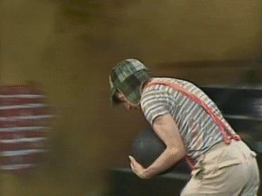 Ya fuera solo un barrigazo, el pobre señor Barriga termina cadaz vez que va a la vecindad en el piso y con sus documentos volando.
